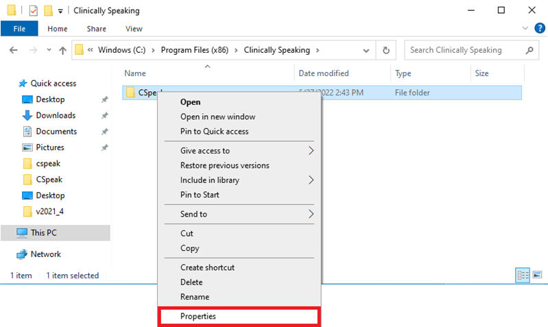 C:\Program Files (x86)\Clinically Speaking | The root program files directories for all Clinically Speaking applications. |