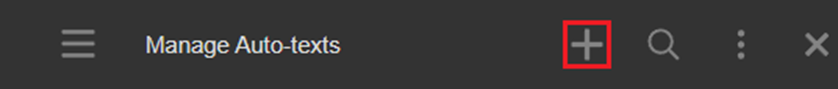 To add a new auto-text please click on the + button shown in the top menu bar.