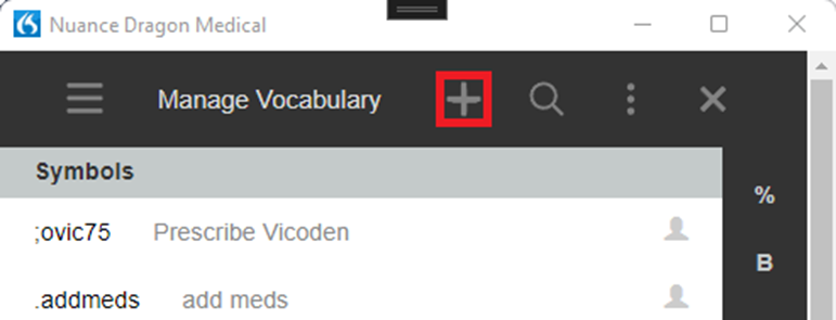 To add a word to the vocabulary, please click on the + button found in topmost menu bar.