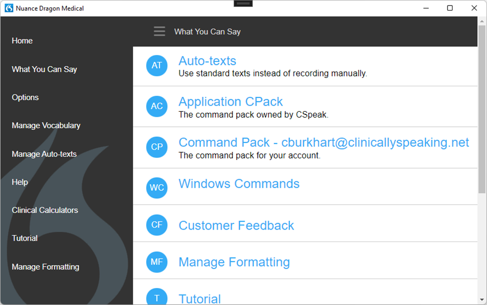 One of the most undervalued tools available to CSpeak users, the what-can-I-say (WCIS) window allows a user to modify and improve their auto-texts, vocabulary, and formatting settings. The purpose of this document is to help users understand the functions that are available to them through the WCIS window.