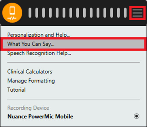The WCIS window can be accessed by voice command. The voice command is, “What Can I Say”.